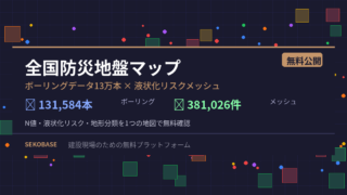無料ツール 【無料】全国防災地盤マップ|ボーリングデータ13万本+液状化リスクを一目で確認 建設現場の地盤情報、まだバラバラのサイトを行ったり来たりしていませんか?SEKOBASE 全国防災地盤マップは、国土地盤情報データベースのボーリングデータ 131,584本 と、防災科学技術研究所(J-SHIS)の地震ハザード情報を 1つの... 2026.04.08 無料ツール