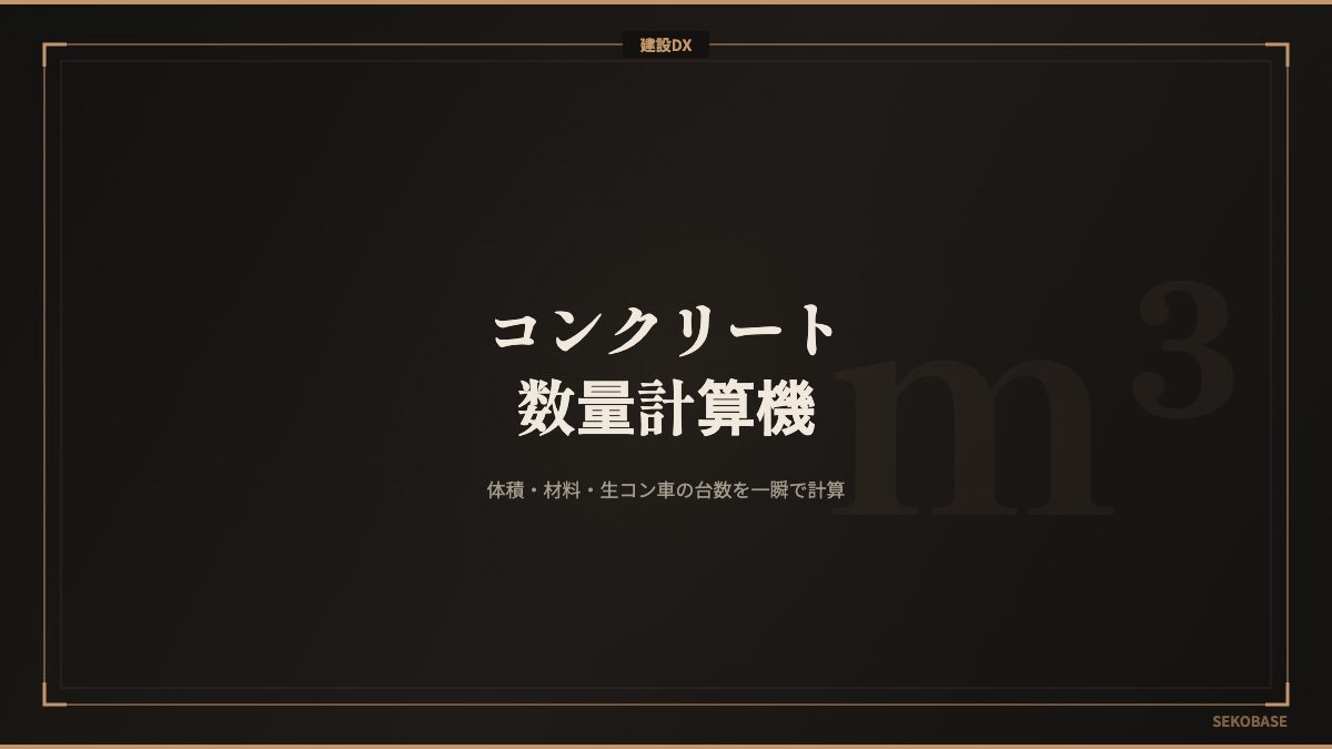 このツールを使えば、形状と寸法を入力するだけで、体積・材料の概算数量・生コン車の台数が一瞬で出る。スマホでも使えるので、現場でポケットから出してすぐ計算できる。