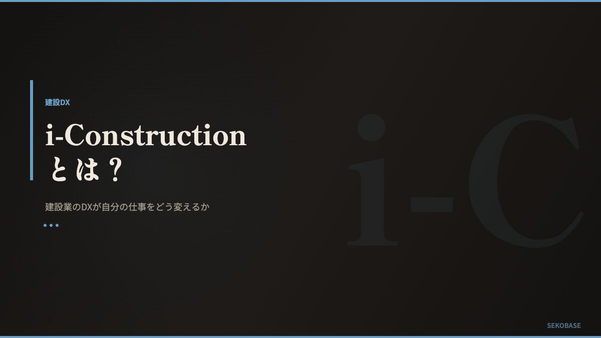 i-Constructionは、建設業の生産性を上げるための国の取り組みだ。電子小黒板、ICT施工、CCUS、BIM/CIM——これらは全部i-Constructionの一部。