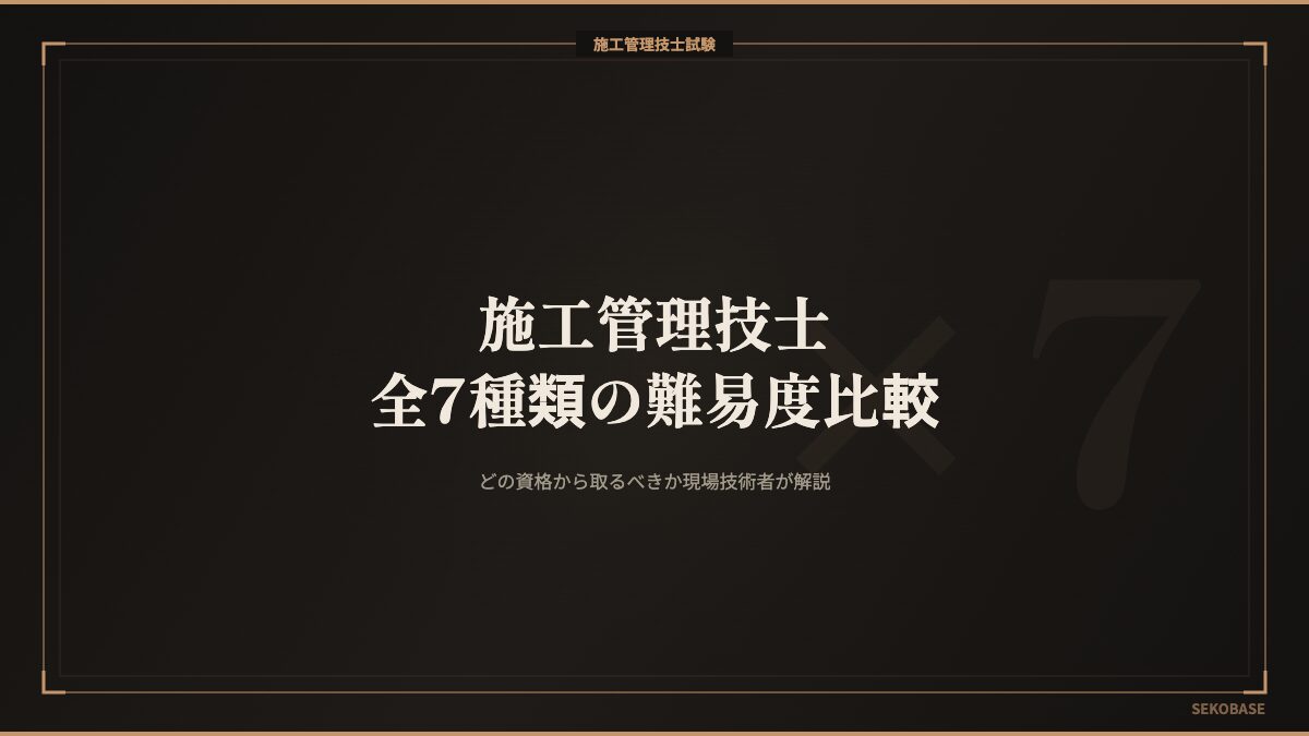 この記事では、7種類の施工管理技士を現場で働く人間の目線で完全整理する。合格率や難易度だけでなく、「どんな現場で必要か」「取ると何が変わるか」「どの順番で取るべきか」まで踏み込んで書く。